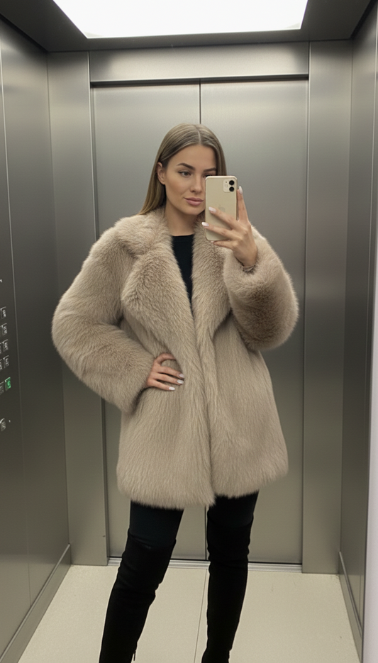 Oversized Faux-Fur-Jacke in sattem Dunkelbraun
